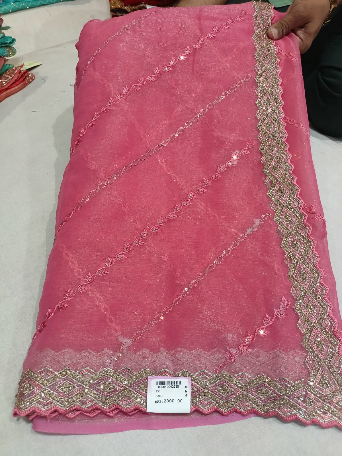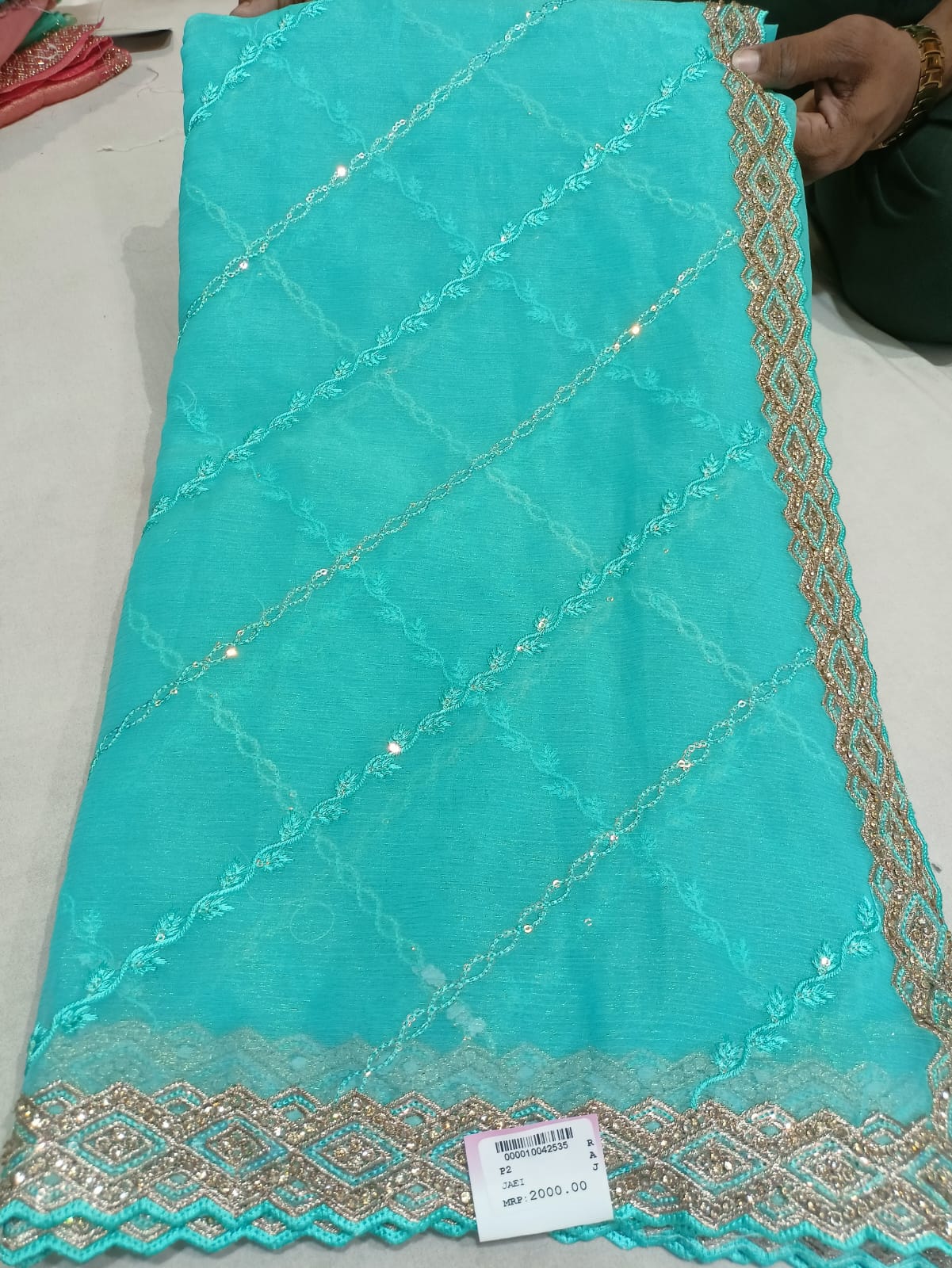 SKU ; RF 131 RAJ FASHION CHIFFON CHAIN FABRIC HANDWORK BORDER PREMIUM SAREE