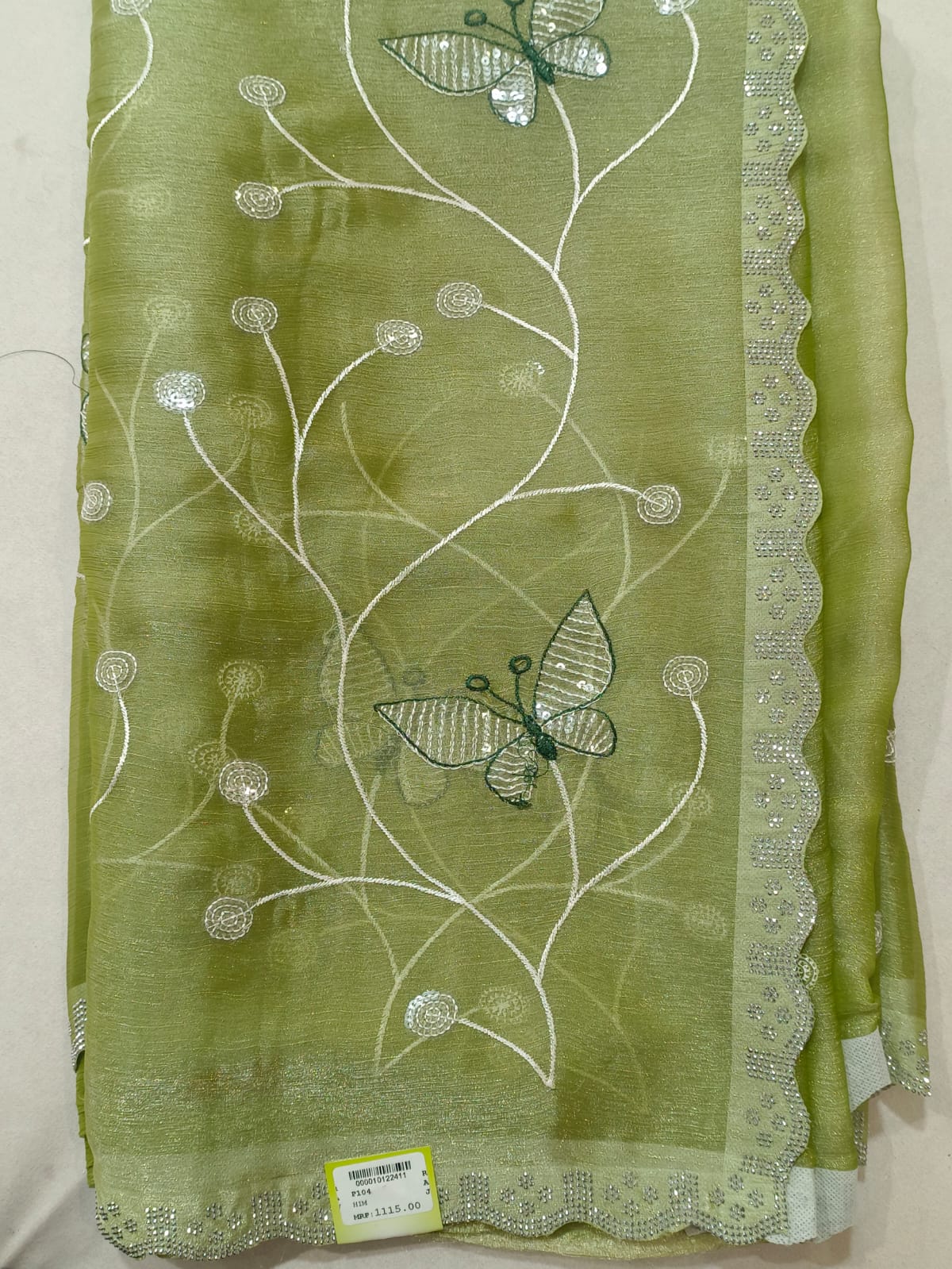 SKU ;RF 116 RAJ FASHION CHIKANKARI WITH SEQUENCE JIMMY CHO SAREE