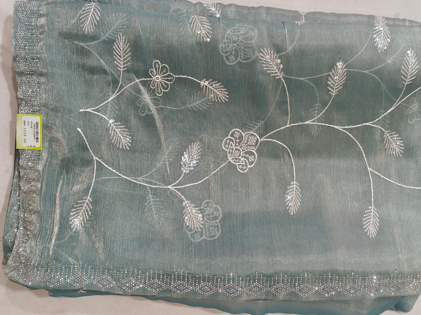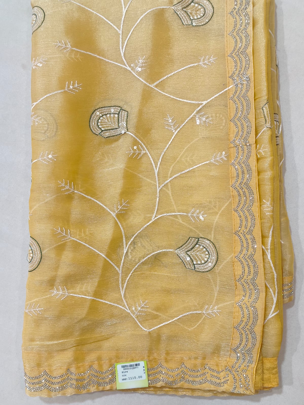 SKU ;RF 112 RAJ FASHION STONE BORDER CHIKANKARI JIMMY CHHO SAREE