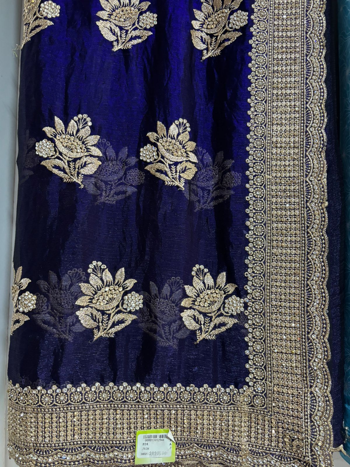 SKU; RF262 RAJ FASHION CHIMAR CHIFFON RESAM WORK ZARKHAN PREMIUM COLLECTION