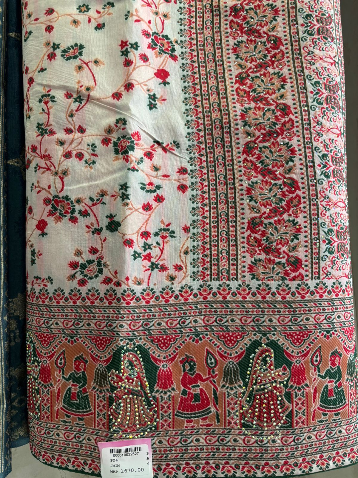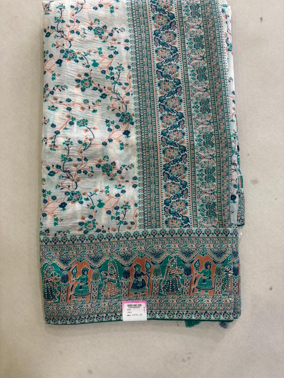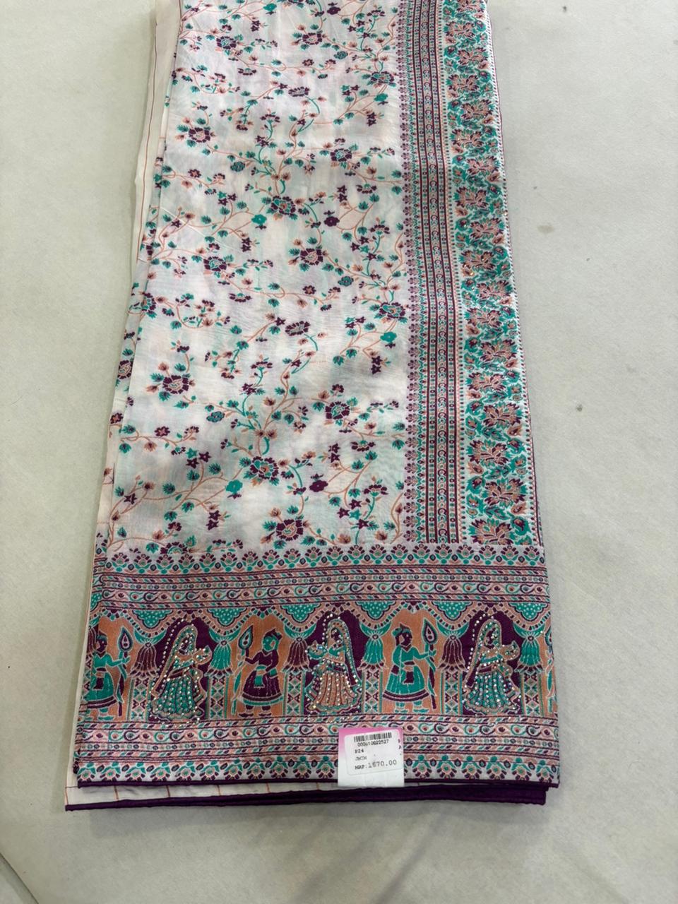 SKU;RF278 RAJ FASHION PASMINA WHITE SPECIAL MALTI PRINT PREMIUM SAREE