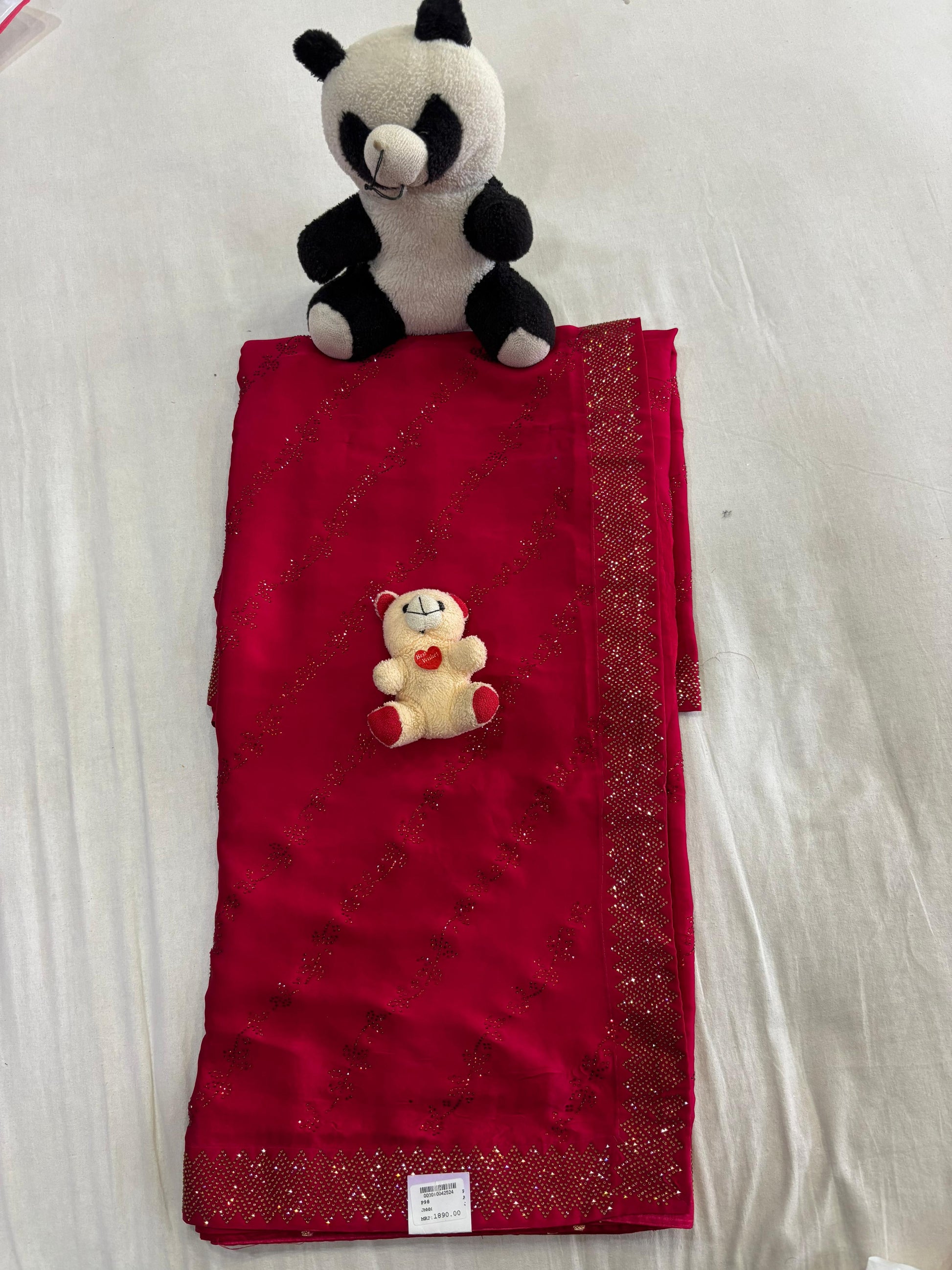 SKU; RF297 RAJ FASHION CHIFFON SAREE DAIMOND WORK PREMIUM SAREE
