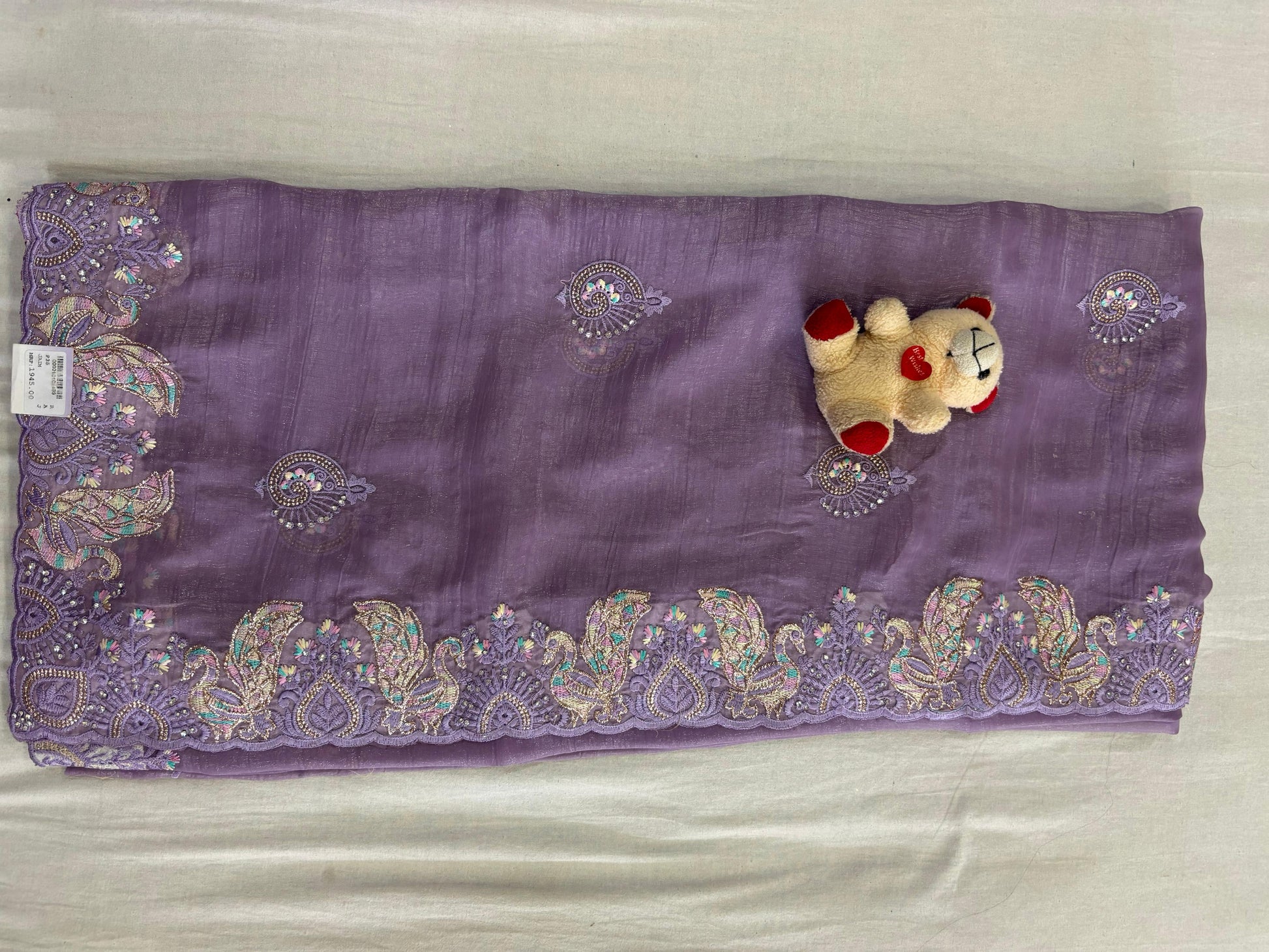 SKU; RF311 RAJ FASHION MALTI EBROIDERY WORK PURPAL COLOR PREMIUM SAREE