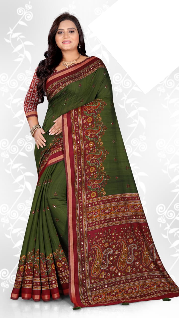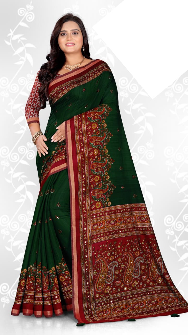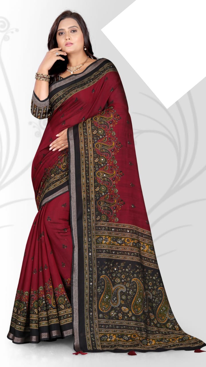 | Pattern / Style | AJRAKH SAREE / MIRRAR WORK |