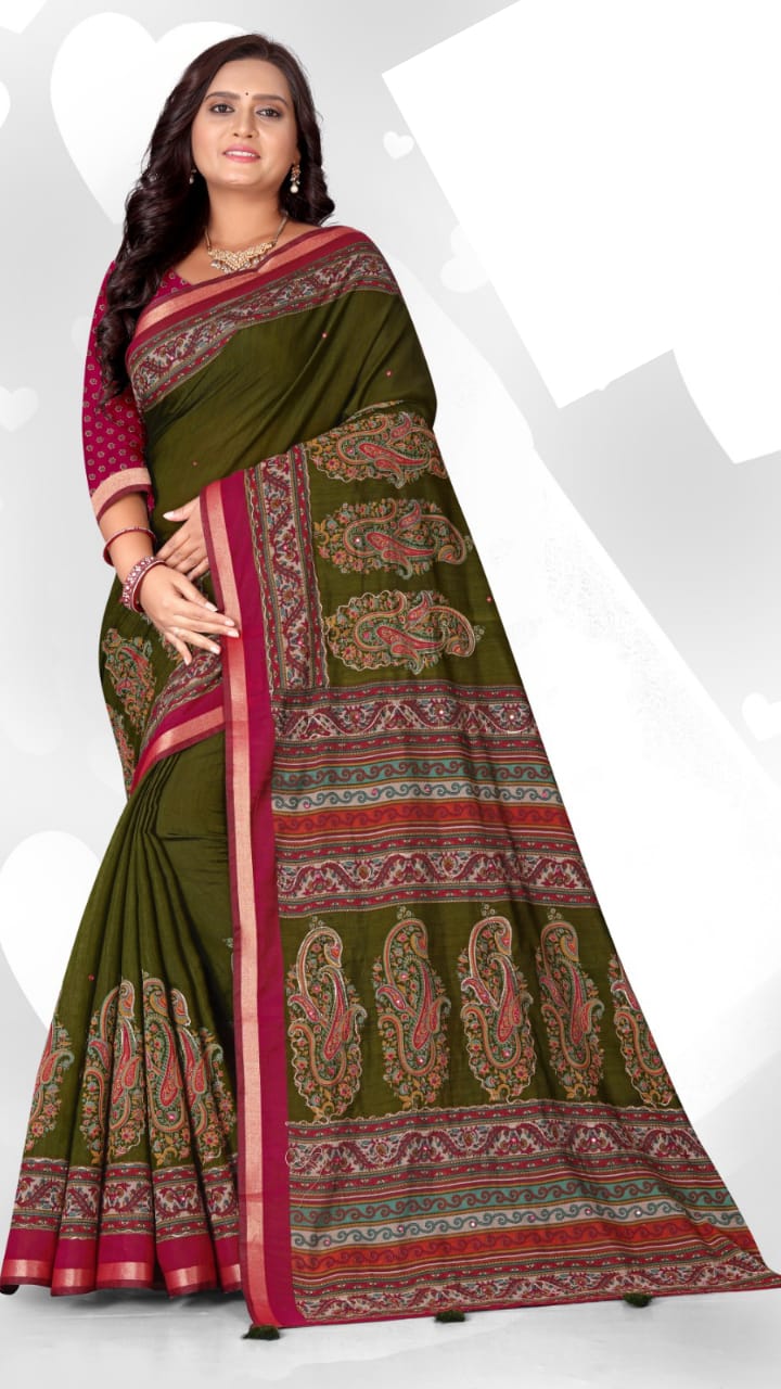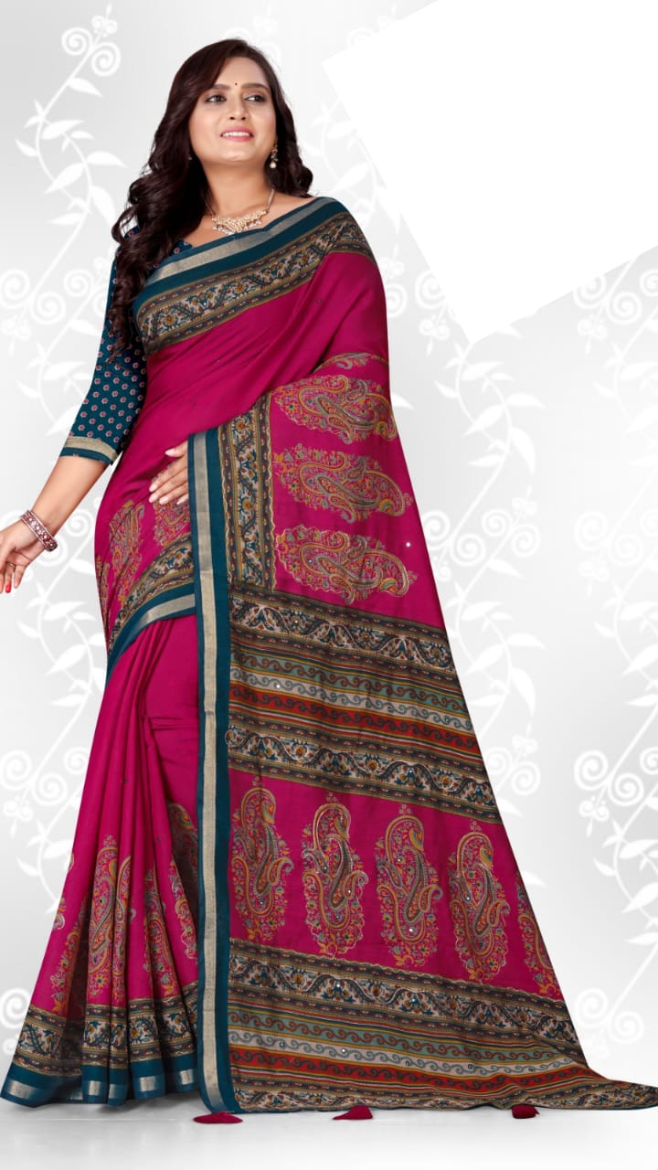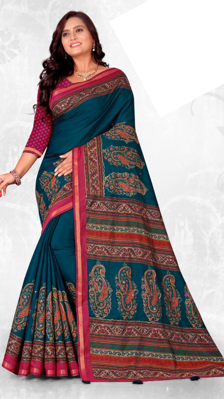 | Pattern / Style | AJRAKH SAREE / MIRRAR WORK |